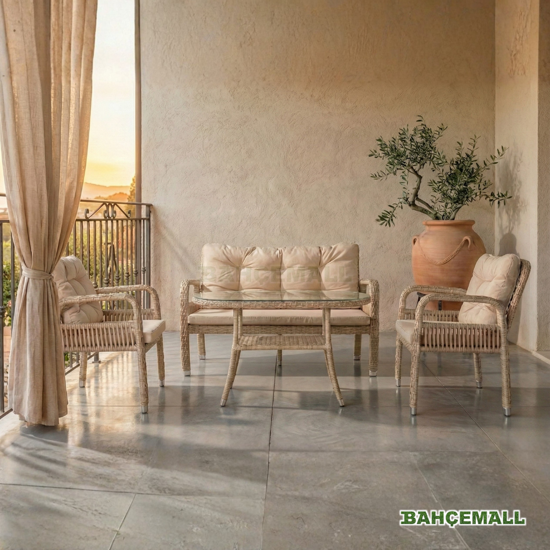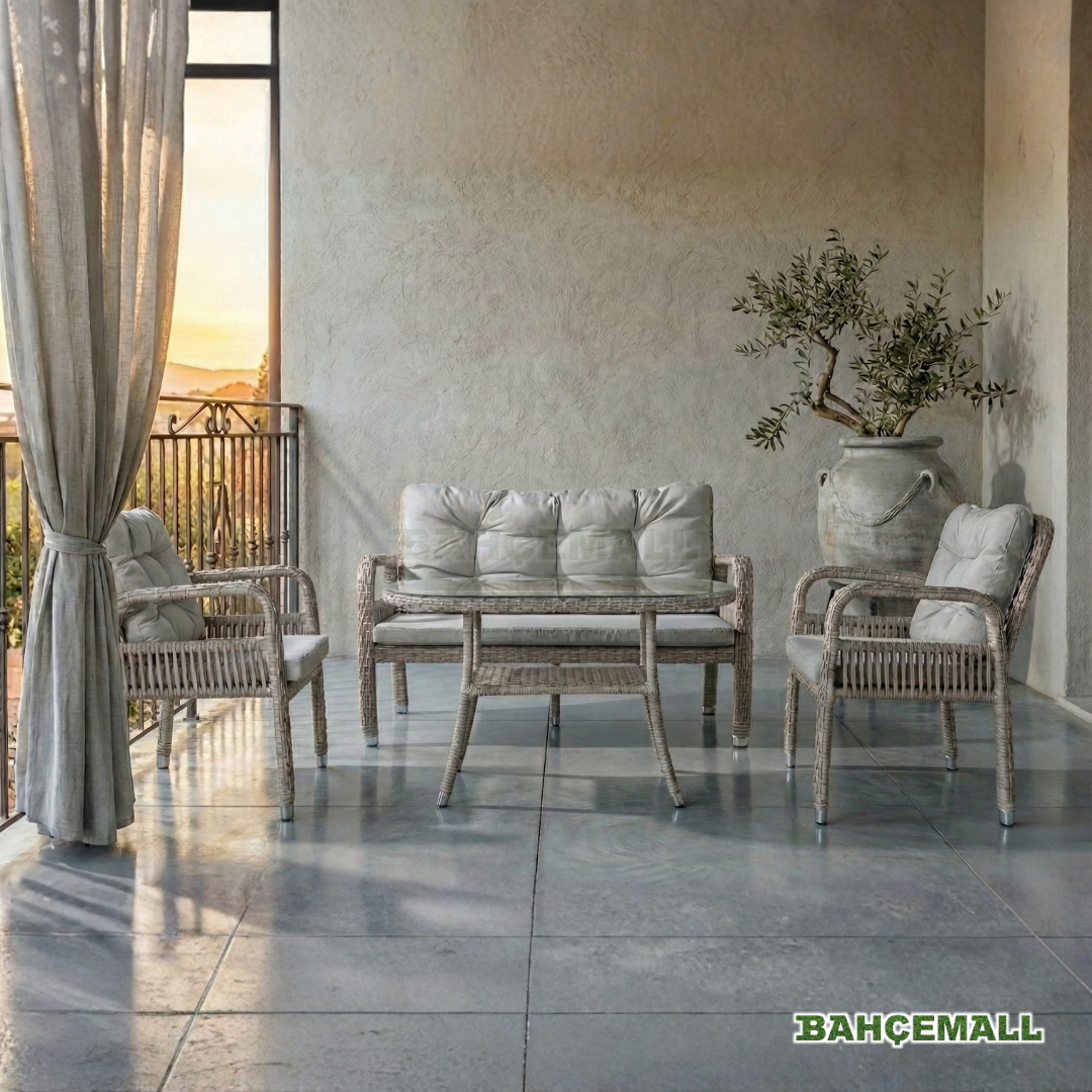 - Bu Small Bahçe Mobilyası, bir adet Sehpa ve iki adet Tekli ve bir adet İkili koltuktan oluşur.