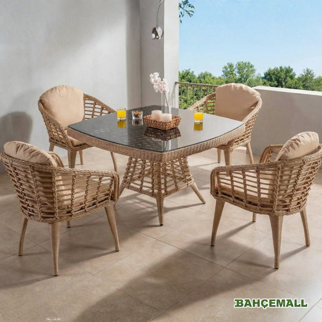 - Bu Efes Bahçe Mobilyası, bir adet Masa ve dört adet Tekli koltuktan oluşur.
