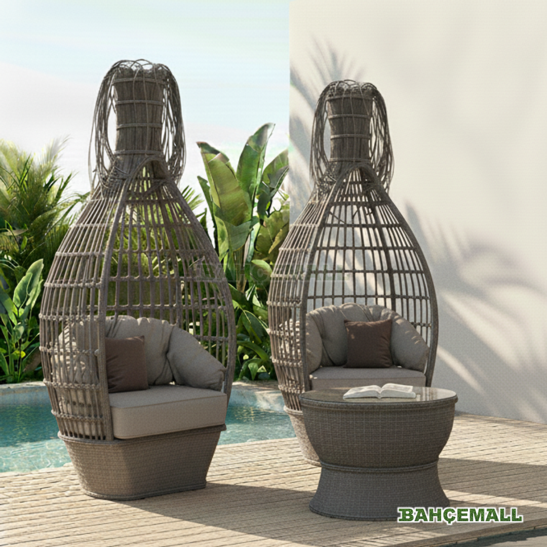 - Bu Kokteyl Bahçe Mobilyası, bir adet Sehpa ve iki adet Tekli koltuktan oluşur.