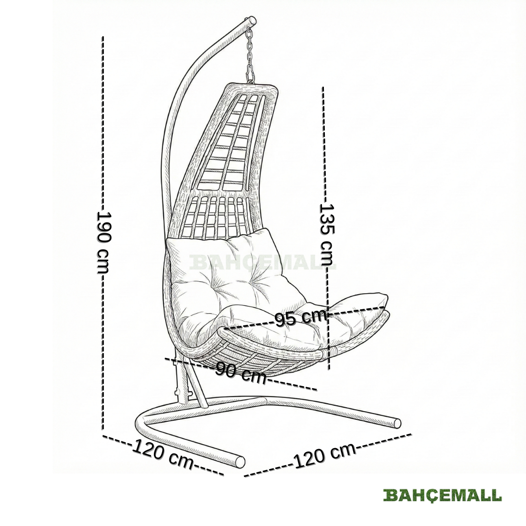 - Salıncak İskeleti : Genişlik 120 x Derinlik 120 x Yükseklik 190 cm