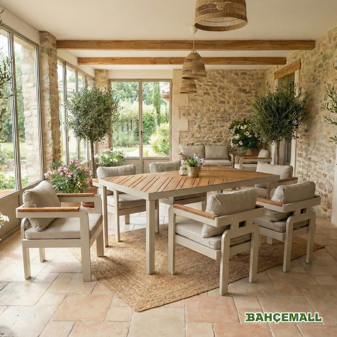 Bahçemall MADO 6 Kişilik Masa Takımı Bej