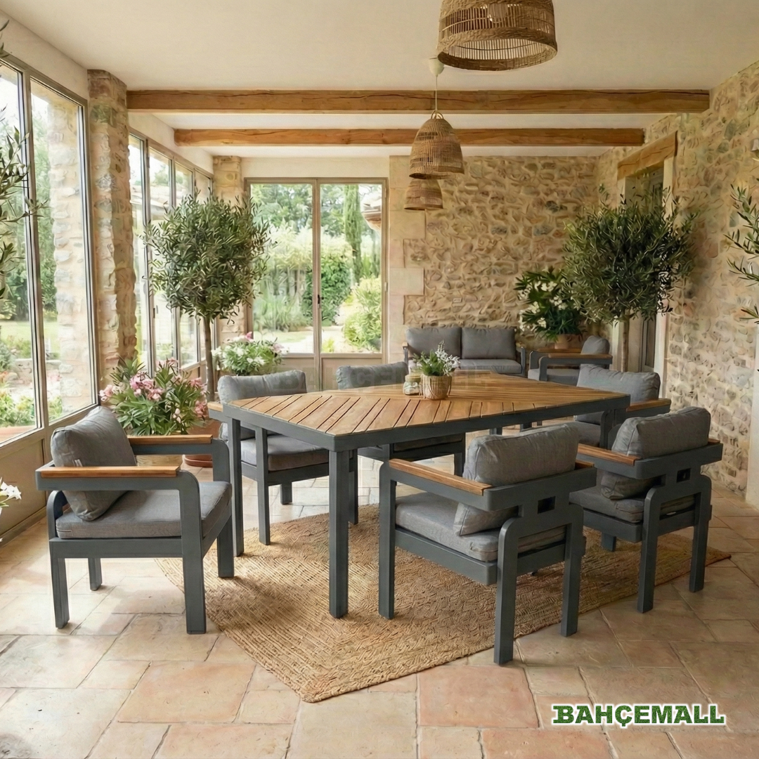 Bahçemall MADO 6 Kişilik Masa Takımı Antrasit