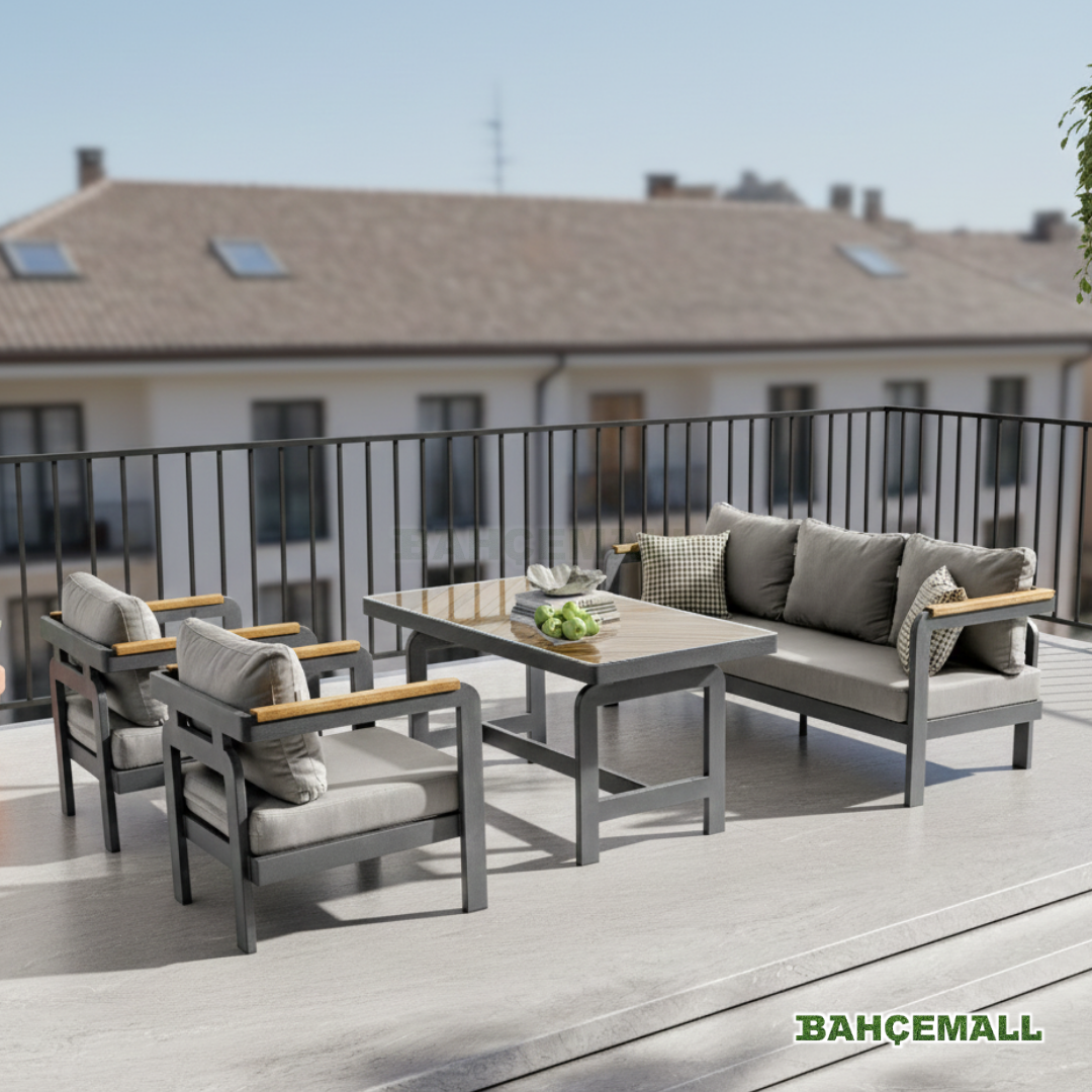 Bahçemall MADO 3'lü Oturma Takımı Antrasit